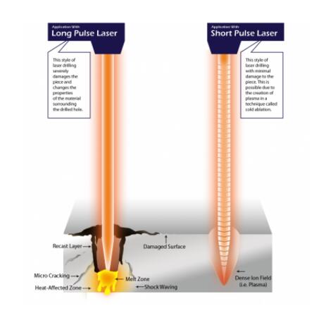 下面的圖表說明了使用短脈沖激光比長脈沖激光的優(yōu)勢。