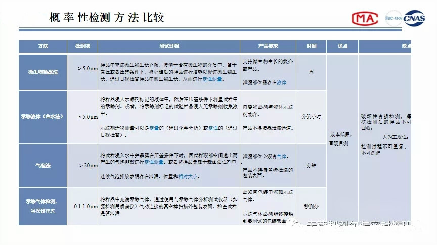 下面介紹下用于無(wú)菌制劑密封性研究的確定性方法及概率性方法的比較:
