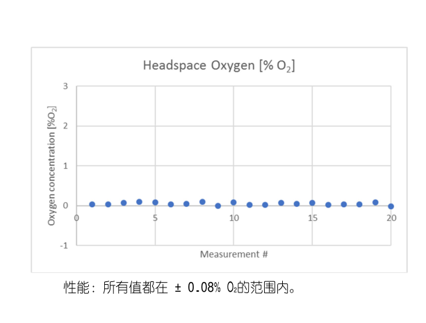 在不拆除輔助袋的情況下測量主袋的頂部空間。靜脈輸液袋放置在樣品位置,使用觸摸屏啟動測量,幾秒鐘后顯示頂空氧氣。取出輸液袋并再次測量。進行