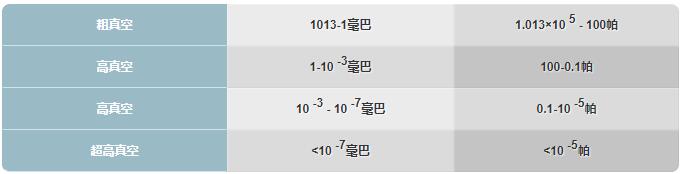 相對于大氣具有負(fù)壓的氣體稱為真空。根據(jù)定義,有四個真空度,具體取決于負(fù)相對壓力的大小