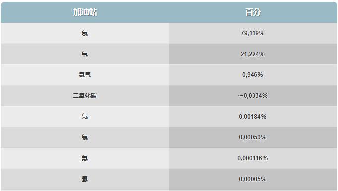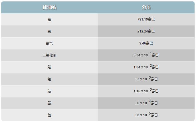 該表顯示了在海平面= 1013 mbar時,空氣中的氣體分壓相對于干燥空氣的標(biāo)準(zhǔn)壓力的關(guān)系